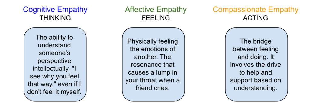 Psychologists generally categorize empathy into three distinct types, each serving a different function in human interaction: